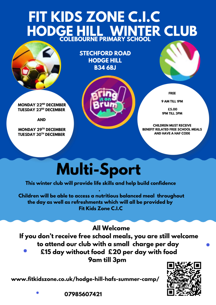 All the children’s food will be provided by Fit Kid Zone and will follow the Birmingham City Council Standard.